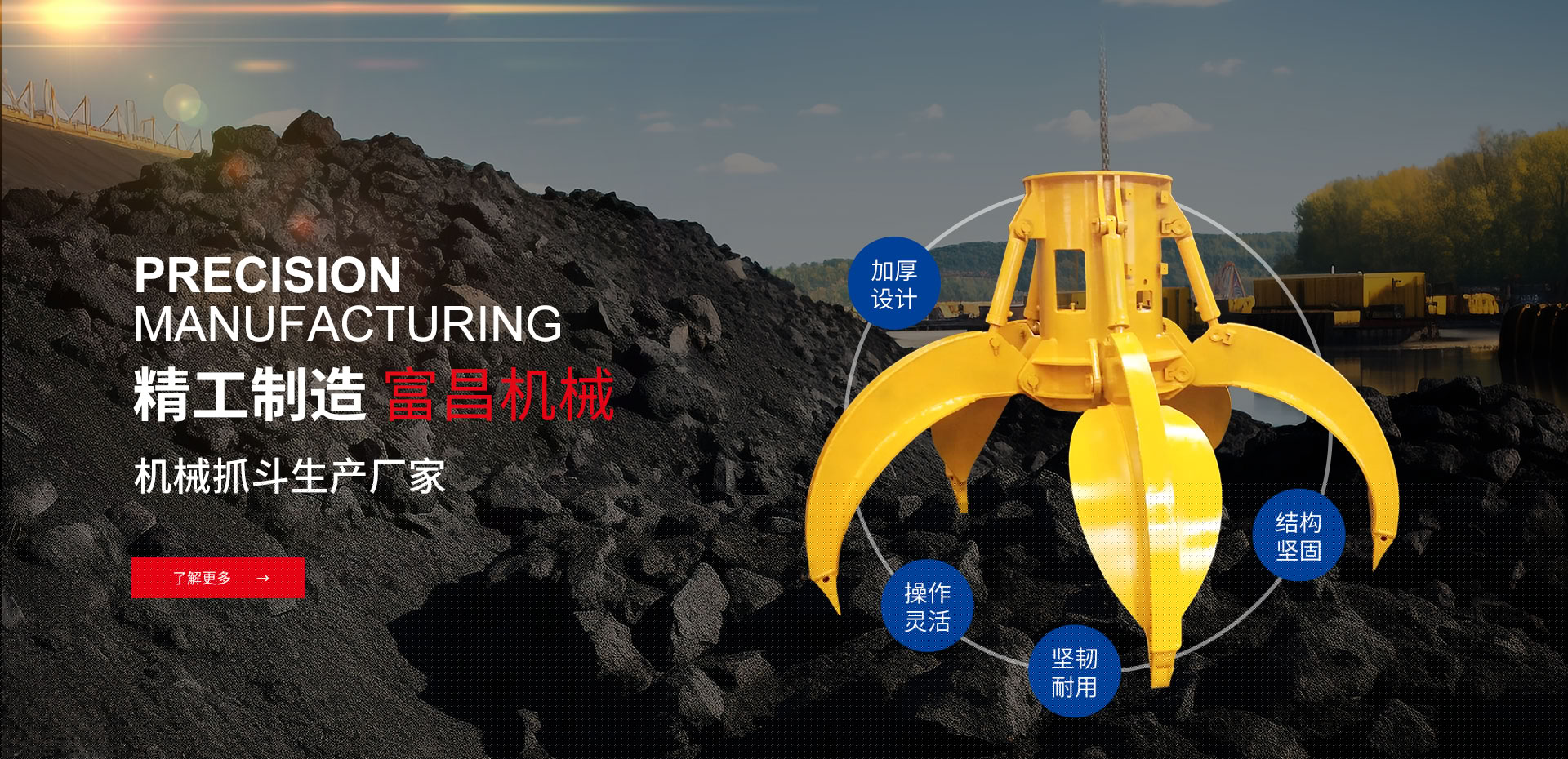 揚州富昌機械有限公司是機械抓斗的生產廠家。廠區坐落在古城揚州東郊,交通極為便利,風景怡人。本廠家是:重合同,守信用先進抓斗廠家企業。揚州富昌機械有限公司擁有經驗豐富的科技人員和技術隊伍,技術力量雄厚,生產設備精良,工藝先進檢測設備齊全,安全性能達標,產品輻射全國二十多個省、市、自治區,在同類產品中有較高的聲譽。本公司集科研開發、生產制造、產品銷售及售后服務于一體,以雄厚技術力量,精良的加工設備,不斷研制出新產品。并可為用戶根據現場使用情況改造更為優良的產品。本公司全體員工熱情歡迎廣大新老朋友光臨指導,惠顧合作!